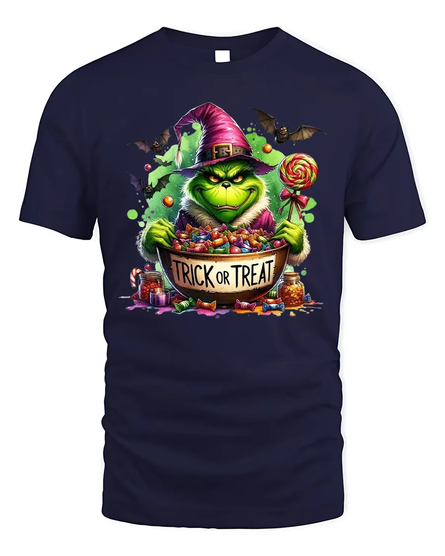Celebrate the season with a shirt that mixes spooky creatures, sweet treats, and bold Halloween flair.