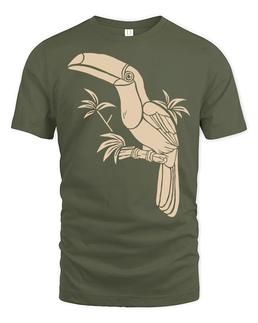 Tropical Toucan Bird Graphic Tee Minimal Jungle Nature Tshirt - military green t-shirt on white background