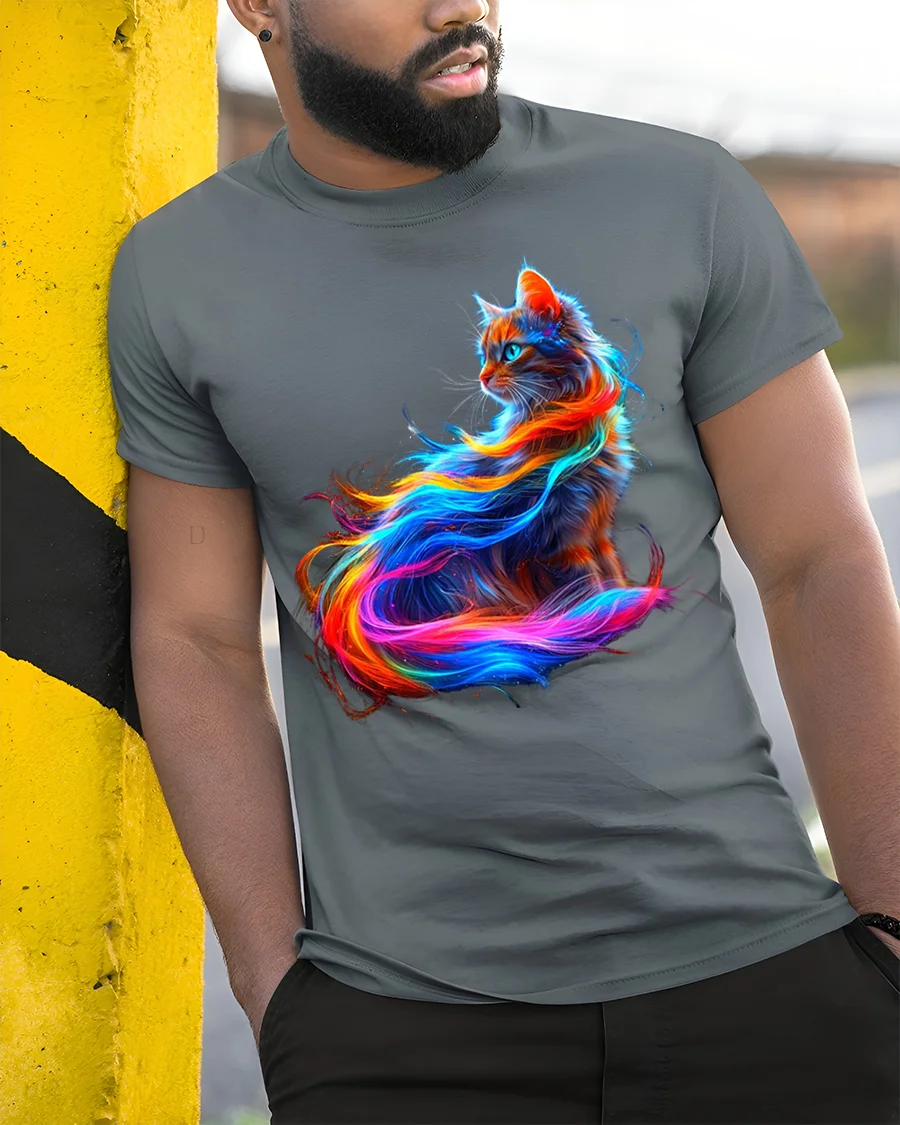 More than just a shirt, the Vibrant Rainbow Cat T-Shirt is a celebration of individuality and the beauty of color. It makes an excellent gift for cat enthusiasts, art lovers, or anyone drawn to unique and eye-catching designs. Embrace the magic and vibrancy of this colorful feline and add a touch of extraordinary to your everyday wardrobe. Wear your passion proudly and let your style shine with this unforgettable graphic tee.