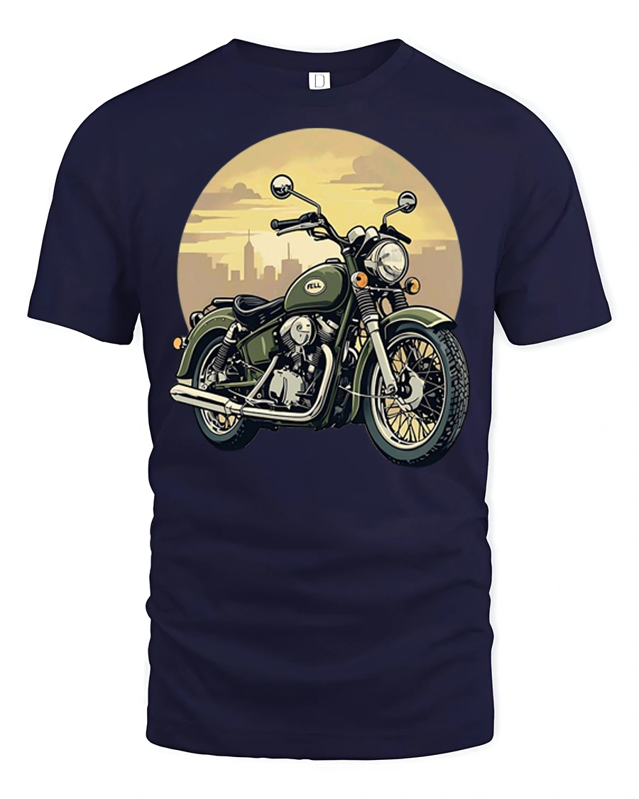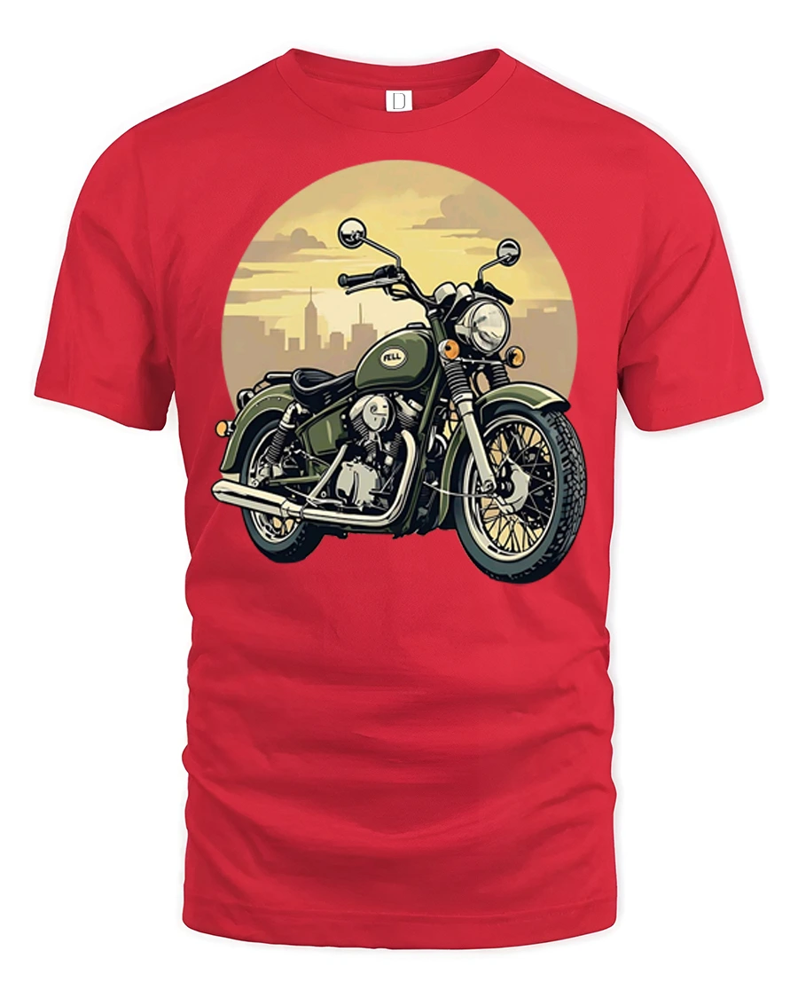 This motorcycle t shirt blends retro design with detailed motorcycle artwork that highlights the power and elegance of classic machines.