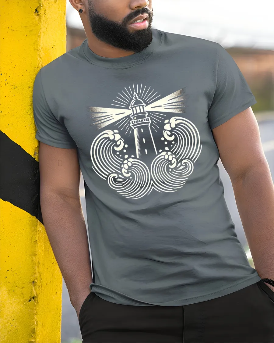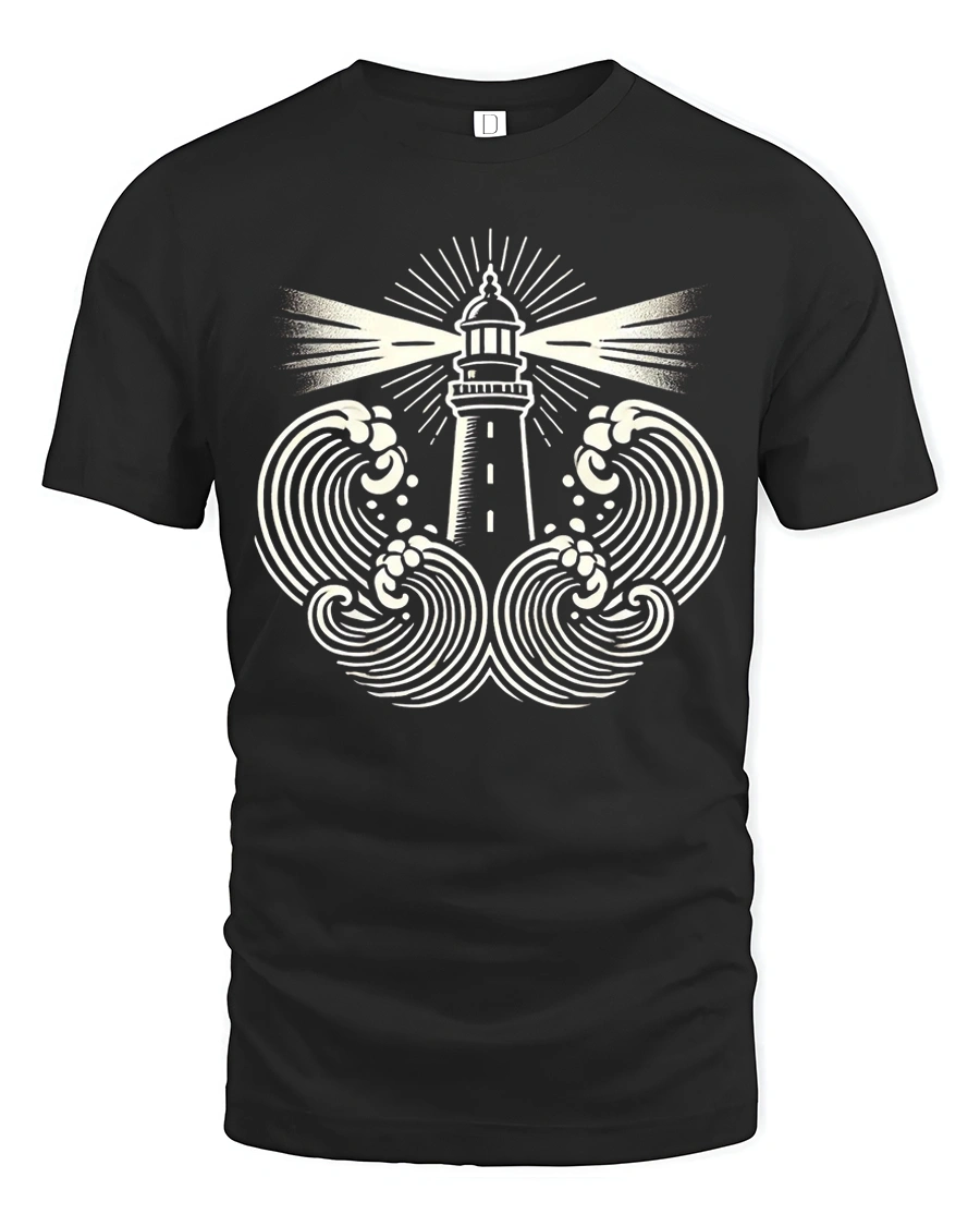 Vintage Lighthouse Ocean Waves Graphic T Shirt Nautical Tee captures the spirit of the sea with a bold and timeless design.