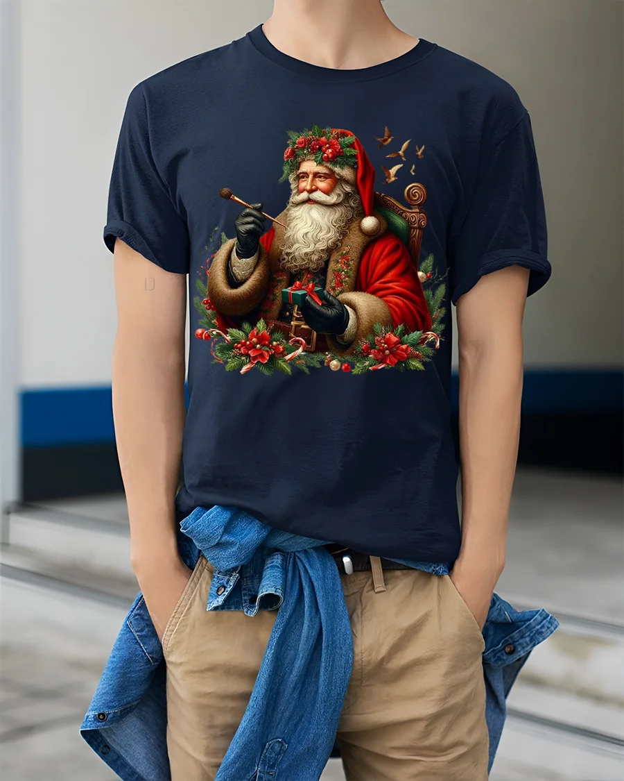 Crafted for both comfort and seasonal style, the Vintage Santa Claus Christmas Holiday T-Shirt is perfect for holiday parties, family gatherings, Christmas Eve dinners, or simply lounging while enjoying festive traditions. The rich red, green, and gold tones of the artwork pop beautifully against the black fabric, ensuring you look stylish while spreading holiday cheer.