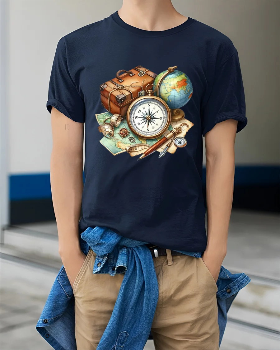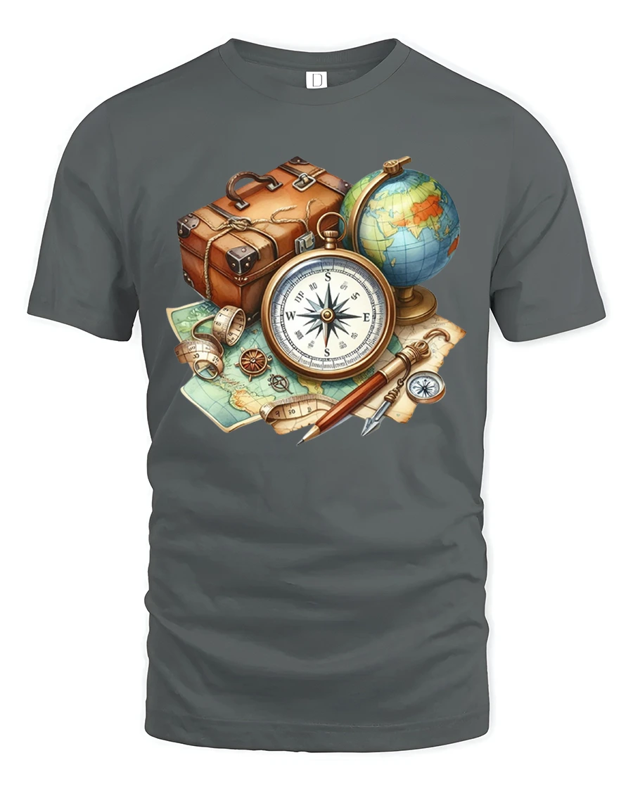 With its timeless explorer theme and beautifully illustrated travel symbols, this graphic tee delivers an inspiring design that reflects curiosity, adventure, and the endless excitement of discovering the world.