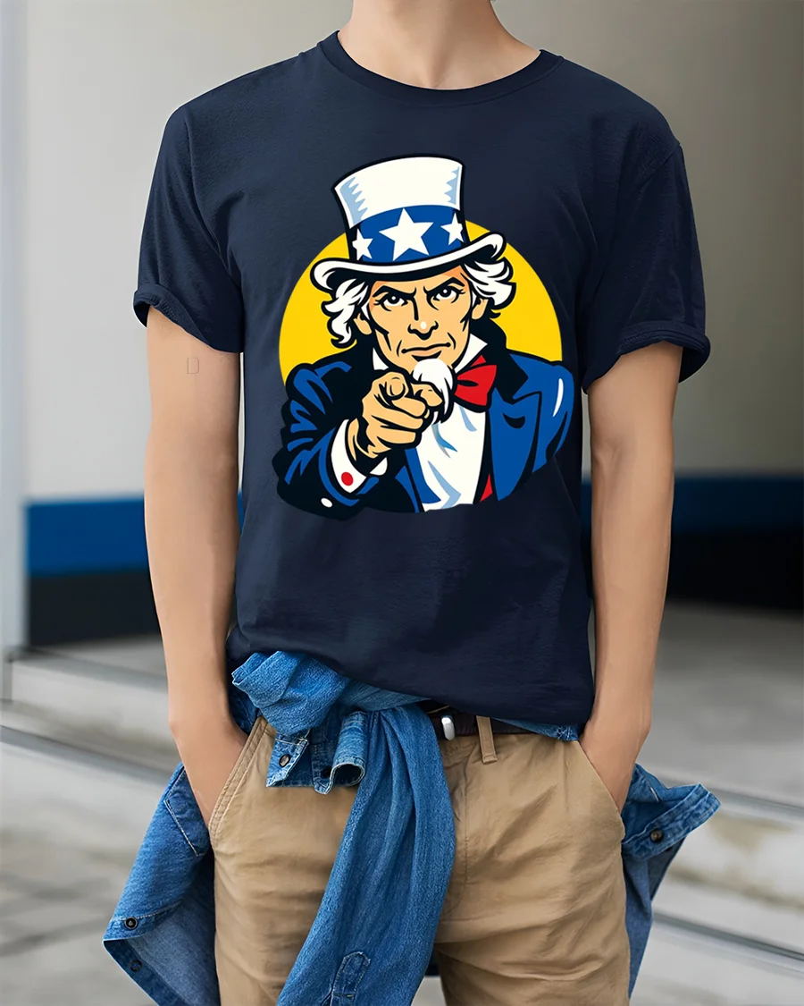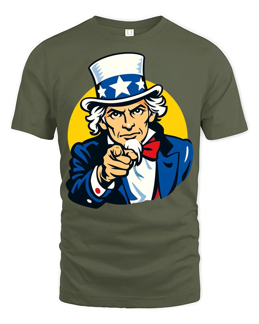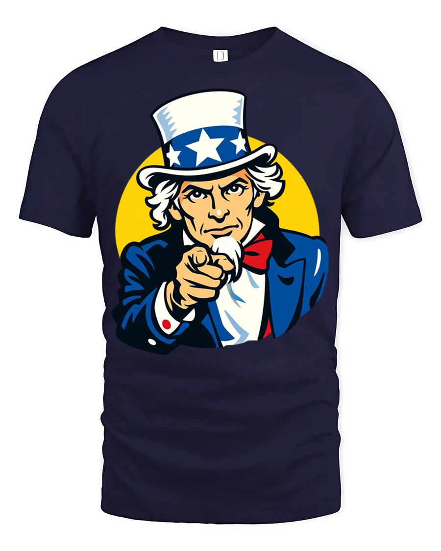 This powerful illustration captures the classic Uncle Sam style with bright patriotic colors and a confident expression that immediately stands out.