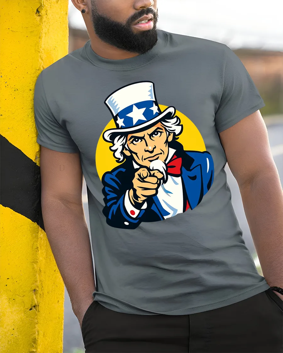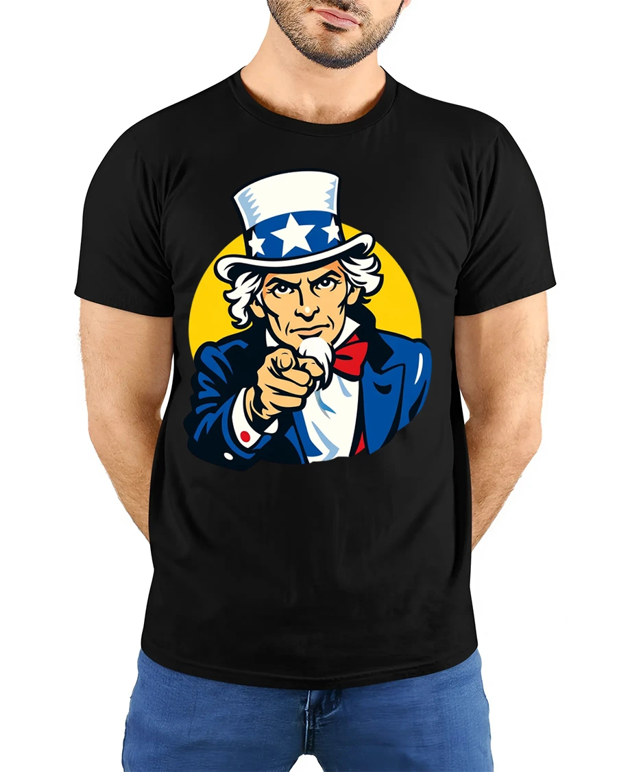 The Vintage Uncle Sam I Want You Patriotic USA Graphic T Shirt features the iconic American symbol pointing directly forward in a bold and recognizable design.