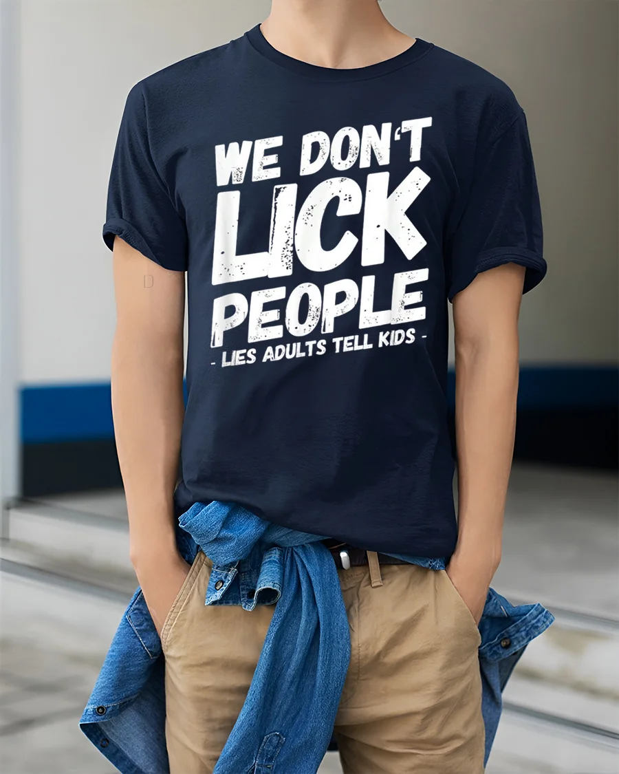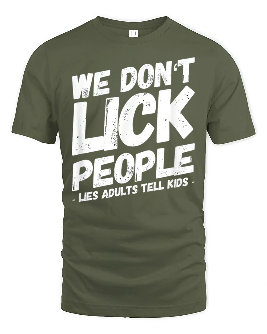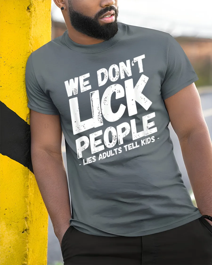 Show off bold humor and playful sarcasm with this We Dont Lick People Funny Sarcastic Humor Quote T Shirt.