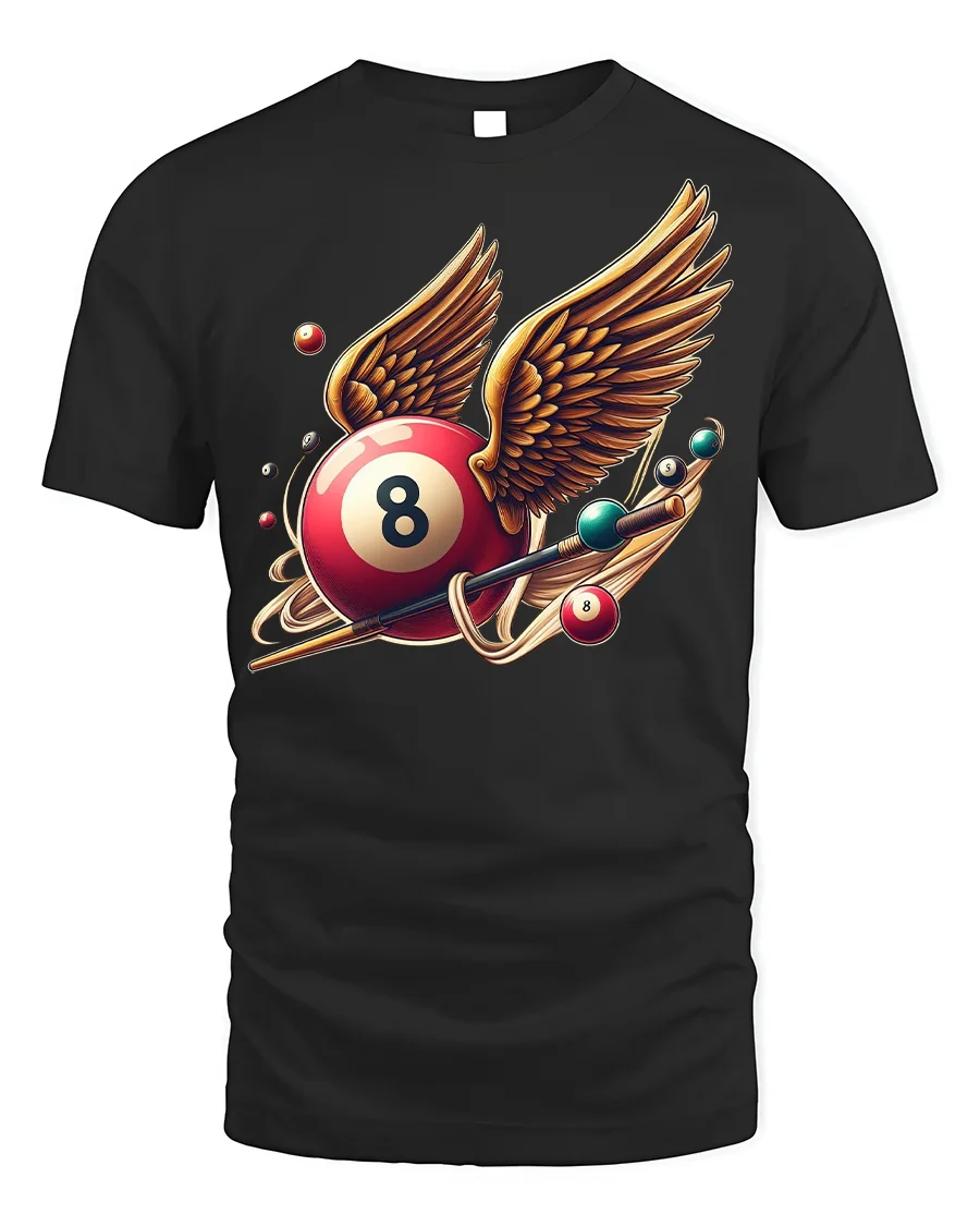 Winged Eight Ball Pool Billiards Graphic T-Shirt