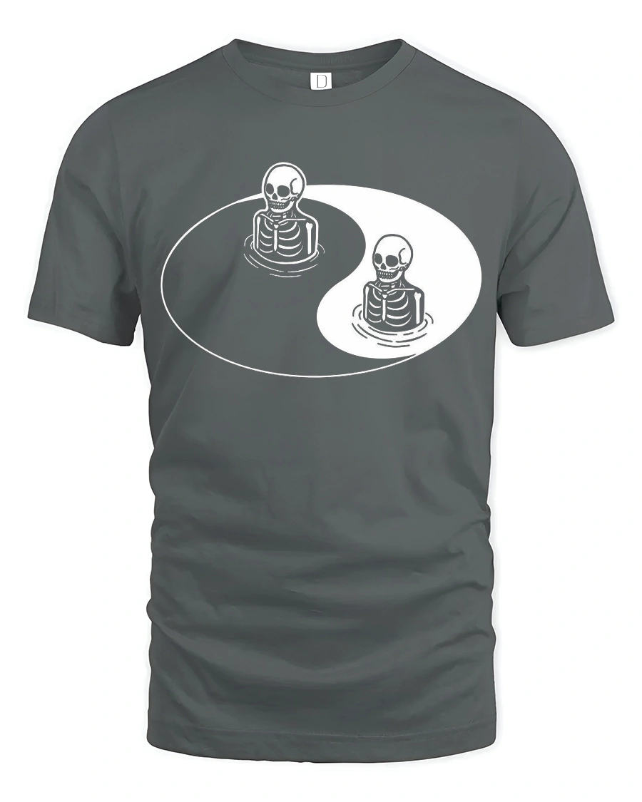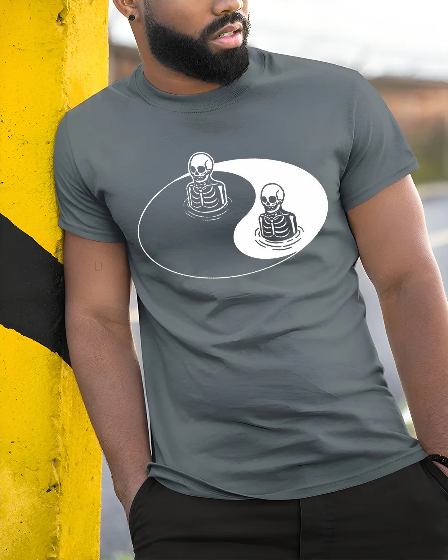 Yin Yang Skeleton Balance Dark Humor Aesthetic Graphic T Shirt combines symbolism with a playful dark twist.