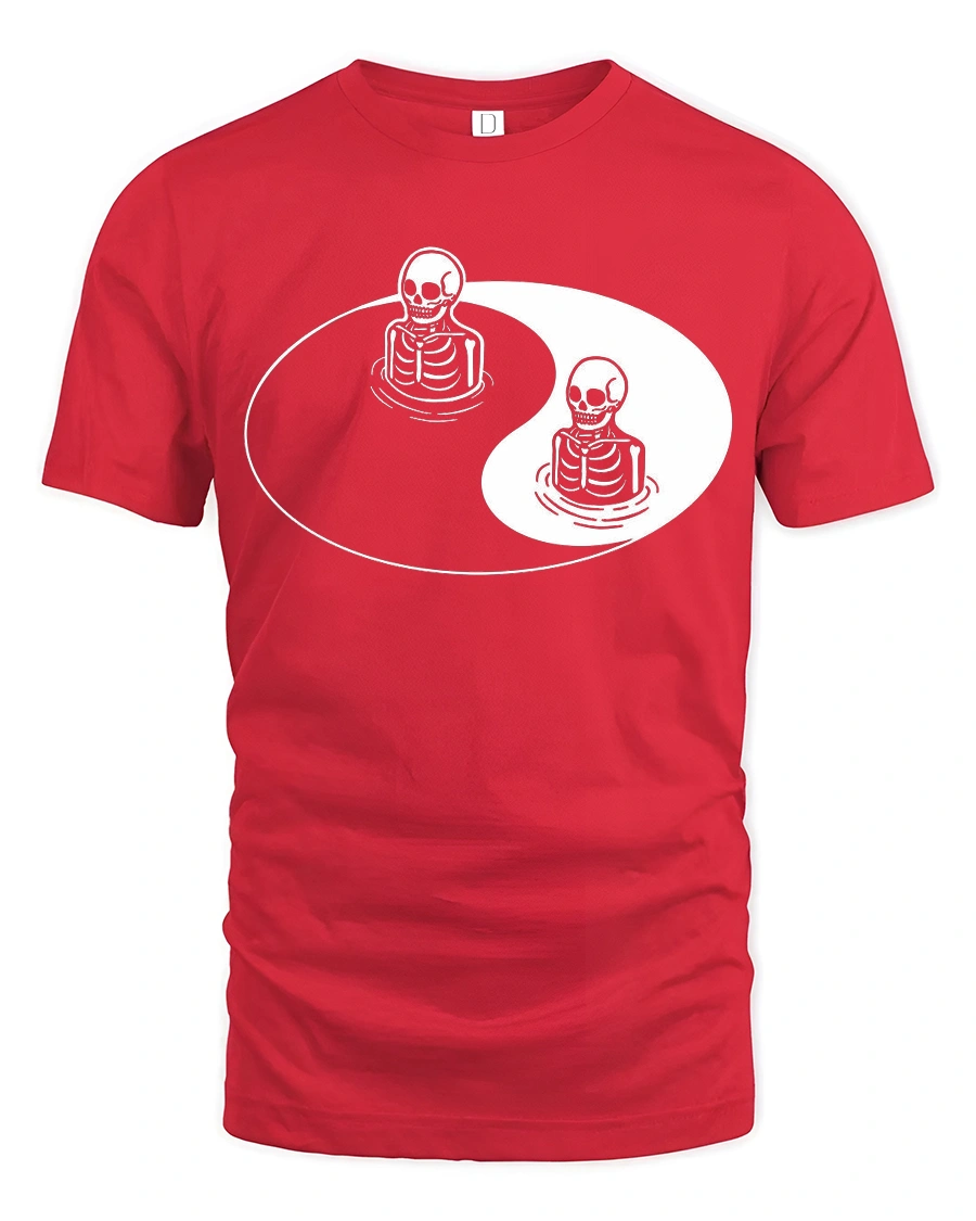 Yin Yang Skeleton Balance Dark Humor Aesthetic Graphic T Shirt - red t-shirt on white background