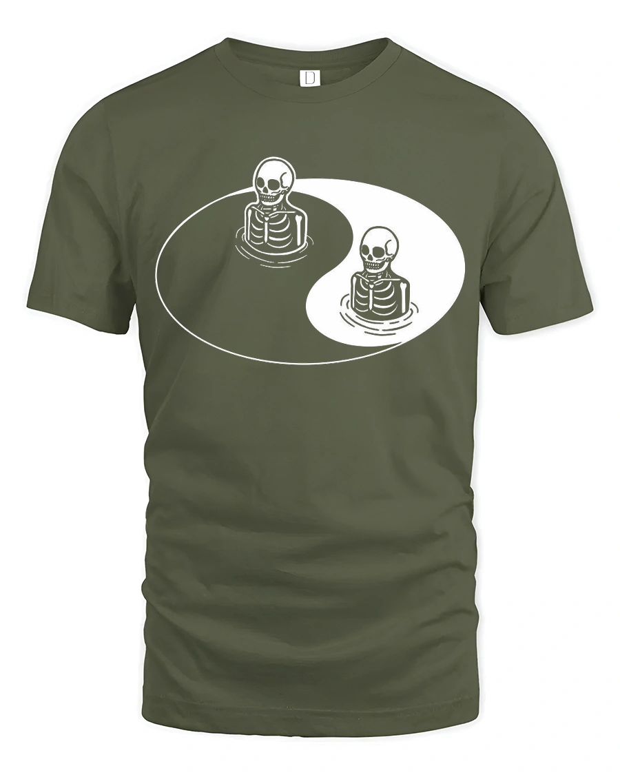 Yin Yang Skeleton Balance Dark Humor Aesthetic Graphic T Shirt - military green t-shirt on white background