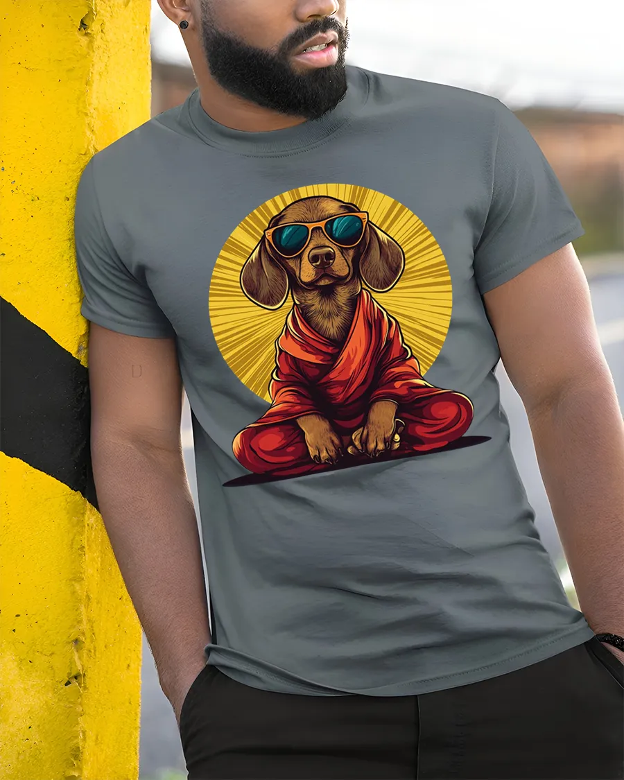 The Zen Meditation Dog With Sunglasses Funny Graphic T Shirt features a playful design that blends humor, relaxation, and spiritual inspired art.