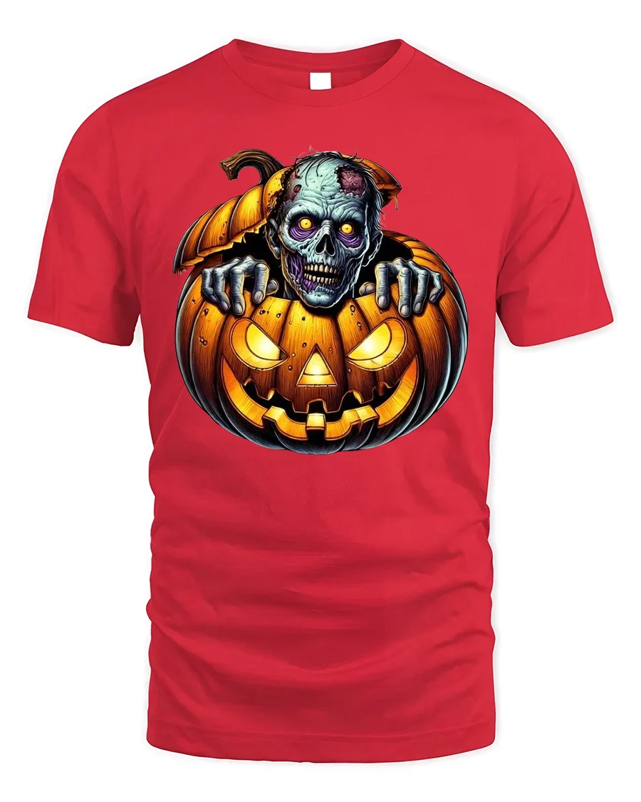Unleash the horror this season with the Zombie Creeping Out Pumpkin Halloween Graphic T-Shirt, a bold and eerie design perfect for Halloween fans. The artwork features a rotting zombie climbing out of a sinister jack-o’-lantern, with glowing eyes and chilling details that bring out the true spirit of October nights. This creepy yet fun tee makes a perfect choice for anyone who loves mixing zombies with classic Halloween imagery.