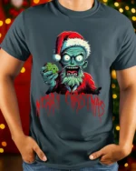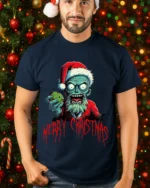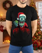Made from soft, durable cotton, this t-shirt is both comfortable and eye-catching, ideal for Christmas parties, horror movie marathons, or casual winter wear. The vivid design stands out on the black background, showcasing the zombie’s eerie expression and vibrant festive colors. Whether you’re scaring up some laughs or standing out from the crowd, this tee delivers.